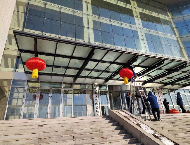 为了迎接2024年农历春节,新区机关事务服务中心根据区领导的指示,统一筹划、精心设计,以贴春联、挂灯笼的方式,对区办公大楼进行节日布置。并部署保洁、物业等相关人员对办公地点进行环境卫生清洁、安全环境检查等工作,做好后勤保障工作,积极为机关干部创造出喜庆、祥和、舒适的节日办公环境。
